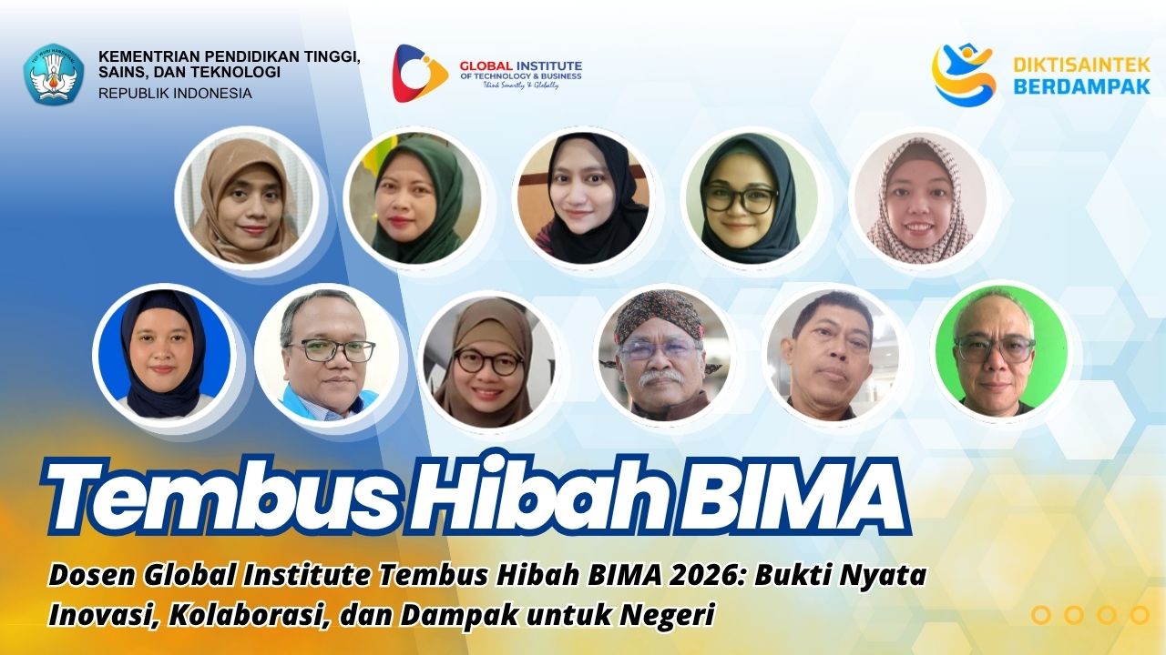 Tangerang – Prestasi membanggakan kembali ditorehkan oleh sivitas akademika Global Institute. Sejumlah dosen berhasil lolos dalam pendanaan Program Hibah BIMA Tahun 2026, sebuah program nasional bergengsi yang mendorong penguatan riset dan pengabdian kepada masyarakat di Indonesia. Keberhasilan ini tidak hanya menjadi capaian