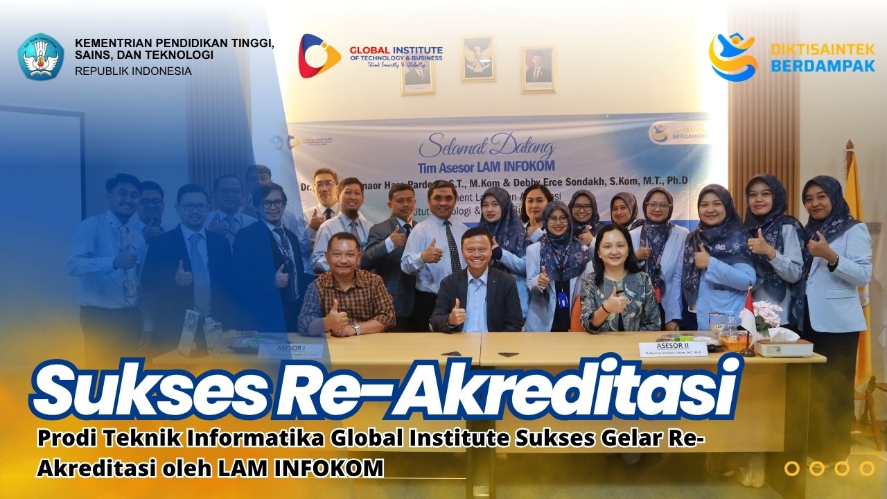 Program Studi Teknik Informatika Global Institute sukses melaksanakan kegiatan re-akreditasi yang berlangsung selama dua hari, pada tanggal 1–2 April 2026. Kegiatan ini merupakan bagian penting dalam upaya penjaminan mutu pendidikan tinggi, yang dilaksanakan oleh tim asesor dari Lembaga Akreditasi Mandiri Informatika dan Komputer (LAM INFOKOM), yaitu Dr. Ir. Akim Manaor Hara Pardede, S.T., M.Kom dan Debby Erce Sondakh, S.Kom, M.T., Ph.D.